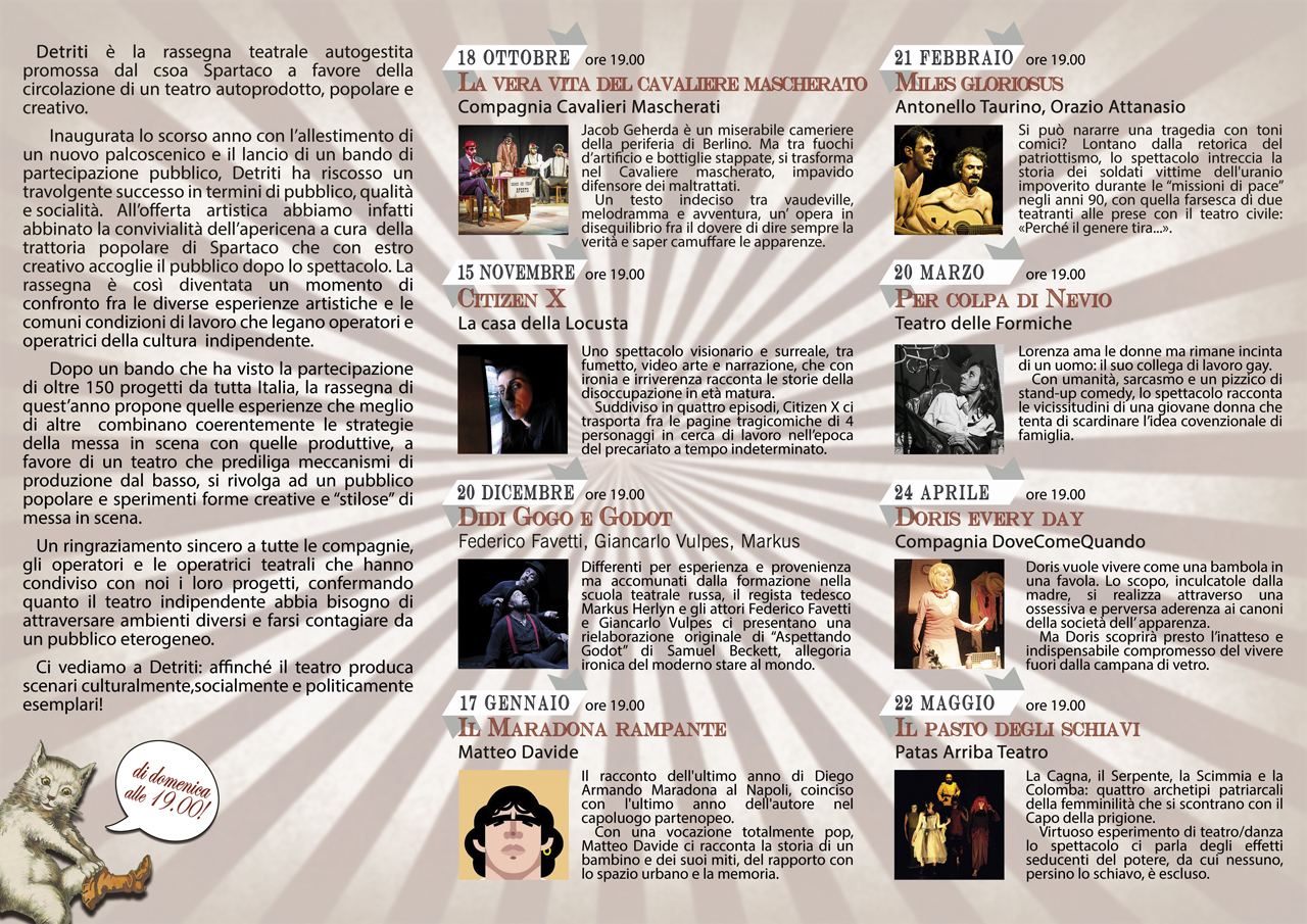 NB: Presto pubblicheremo anche i vincitori della residenza teatrale messa a disposizione da Detriti presso i locacli del csoa Spartaco.