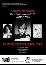 🎭Venerdì 7 Dicembre alle 21:30, per la prima volta in scena a Roma ci sarà Elena Arvigo in “La metafisica della bellezza” // #Detriti, con la partecipazione di Sonia Barbadoro e Laura Garofoli.