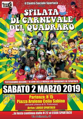 Per il 16simo anno consecutivo il Csoa Spartaco auto-organizza per le strade del quartiere Quadraro la sfilata di carnevale!
