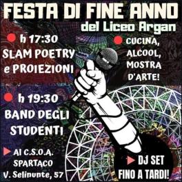 Festeggiamo la fine dell’anno scolastico del liceo ARGAN al C.S.O.A. Spartaco, mettendo in gioco tutta la nostra arte e il nostro spirito di comunità! Leggeremo le nostre poesie e testi autoprodotti, Proietteremo i video artistici degli studenti, allestiremo le nostre opere, suoneranno le band e i dj di scuola, staremo insieme per parlare, ballare, bere, pogare, pomiciare e divertirci.