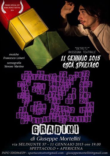 Una recensione di “84 Gradini” lo spettacolo di Giuseppe Mortelliti che *questa domenica* aprirà il nuovo anno di «DETRITI»: Rassegna Teatrale, la rassegna teatrale indipendente, autoprodotta e ‘stilosa’ del Csoa Spartaco.