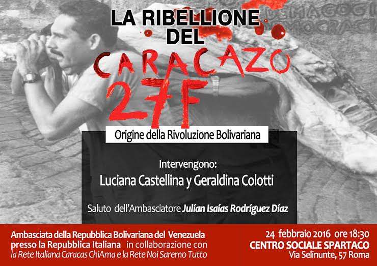 al termine del dibattito sarà offerto un aperitivo Continua a leggere Mercoledì 24 febbraio – La Ribellione del CARACAZO 27F